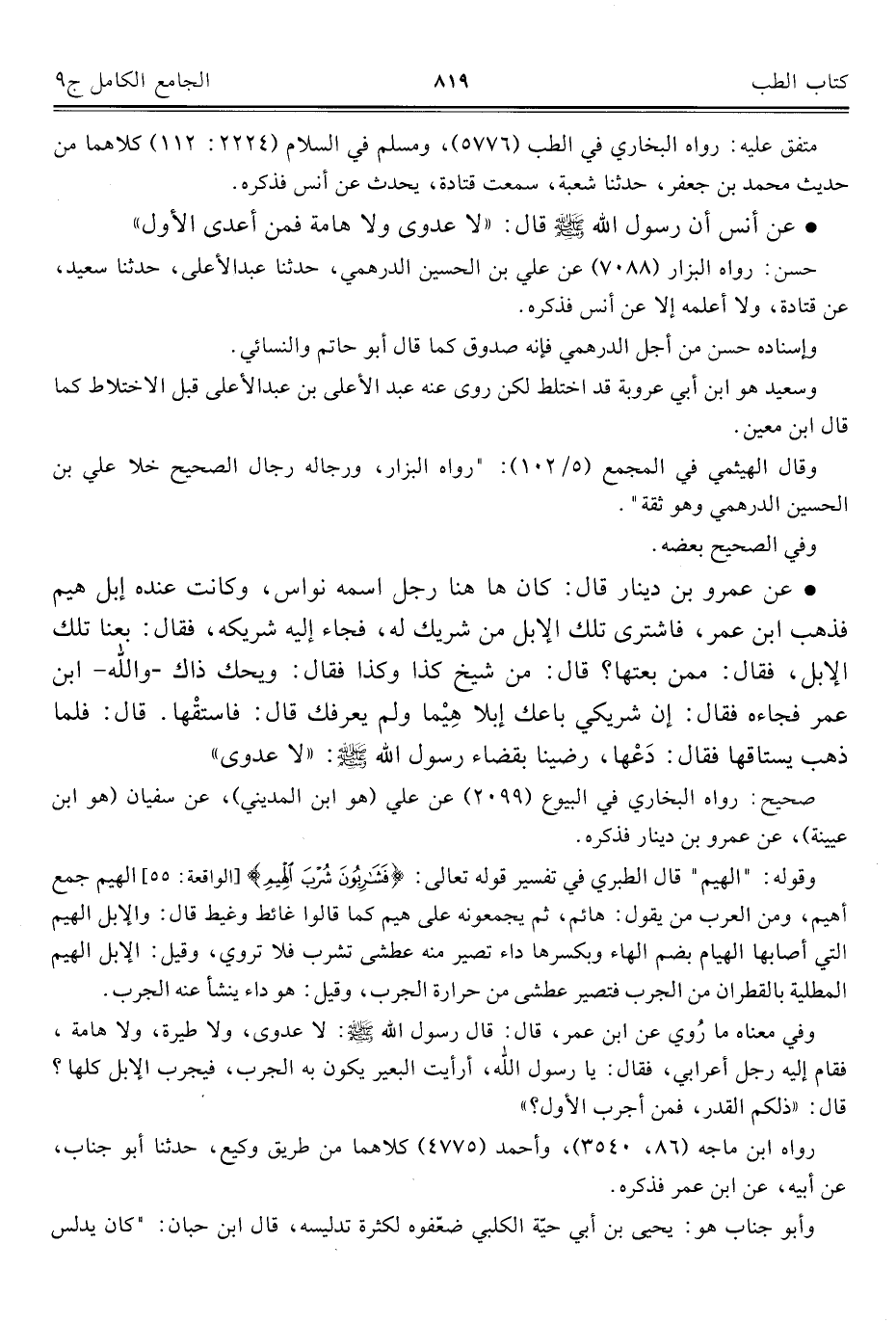 كتاب الجامع الكامل في الحديث الصحيح الشامل المرتب على أبواب الفقه (اسم الجزء: 9)