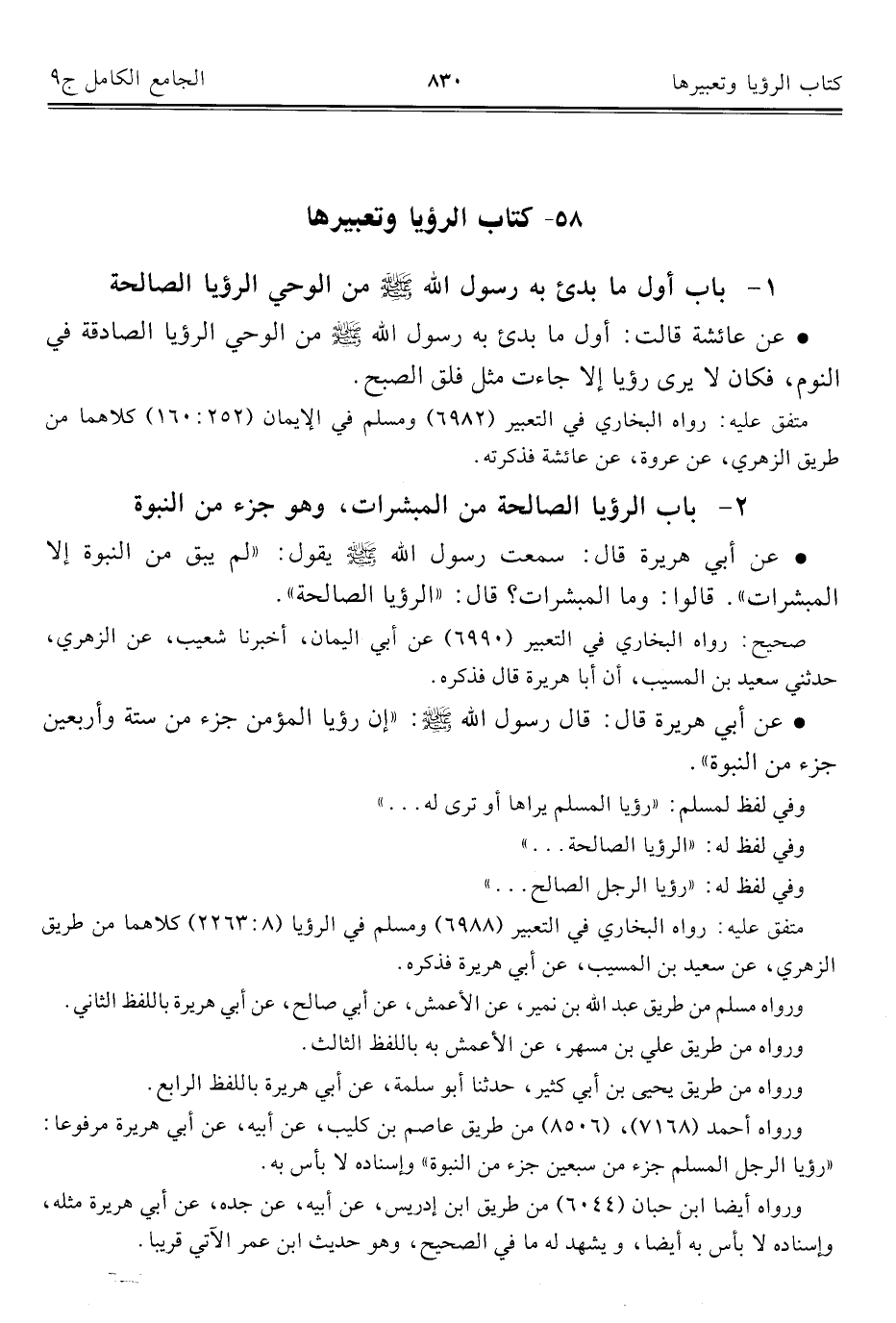 كتاب الجامع الكامل في الحديث الصحيح الشامل المرتب على أبواب الفقه (اسم الجزء: 9)