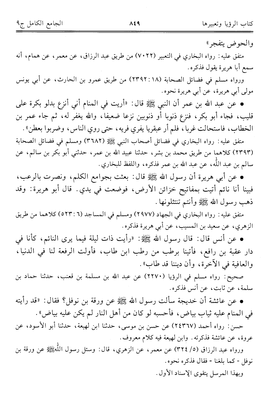 كتاب الجامع الكامل في الحديث الصحيح الشامل المرتب على أبواب الفقه (اسم الجزء: 9)