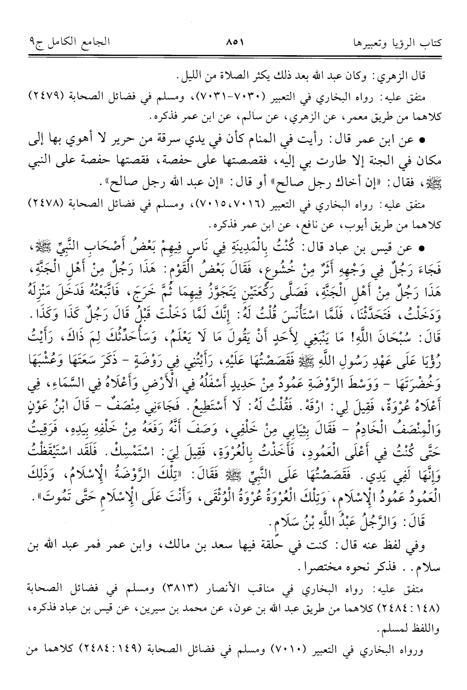 ورواه البخاري في التعبير (٧٠١٠) ومسلم في فضائل الصحابة (١٤٩: ٢٤٨٤) كلاهما من