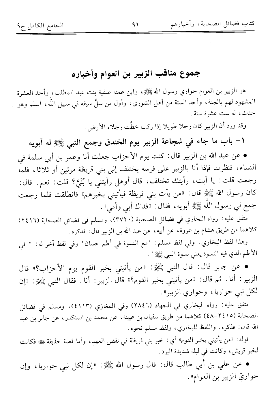 جموع مناقب الزبير بن العوام وأخباره