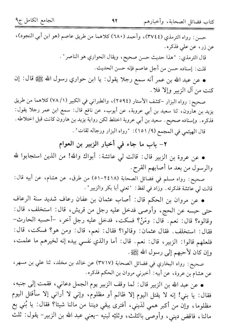 ٢ - باب ما جاء في أخبار الزبير بن العوام