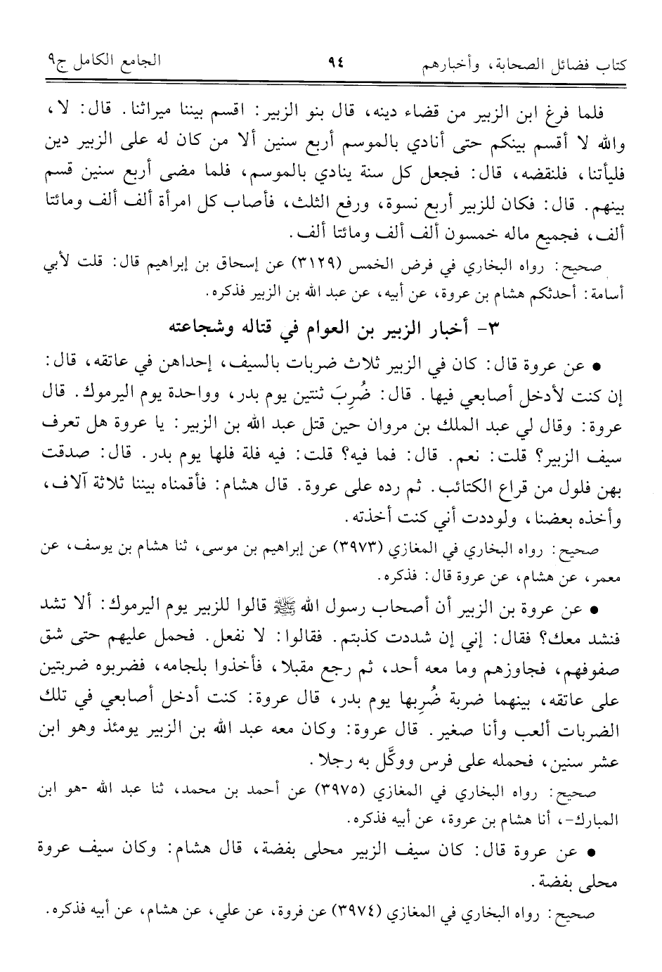 ٣ - أخبار الزبير بن العوام في قتاله وشجاعته