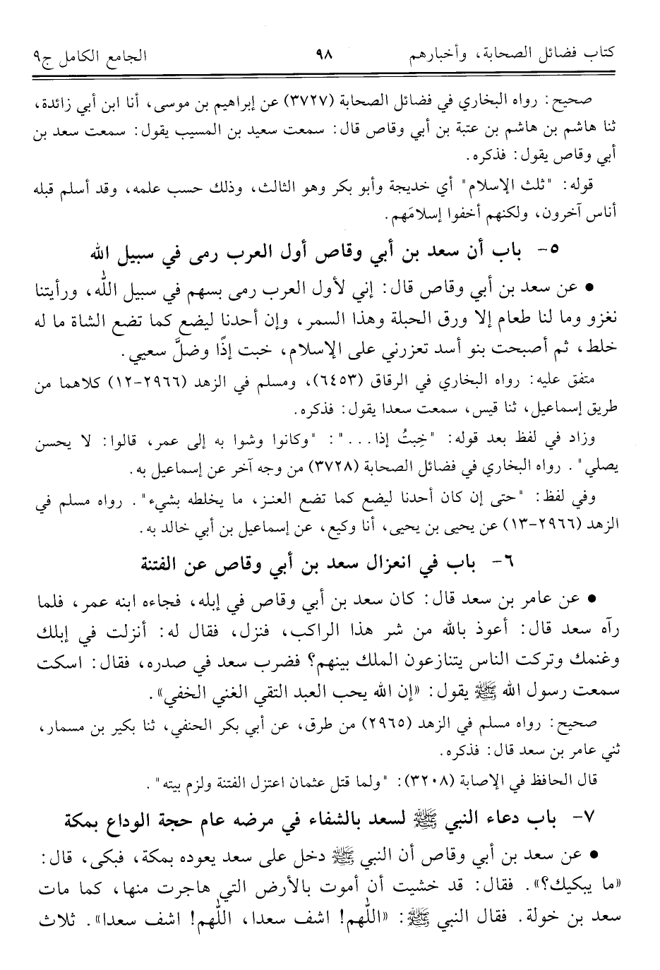 ٥ - باب أن سعد بن أبي وقاص أول العرب رمى في سبيل الله