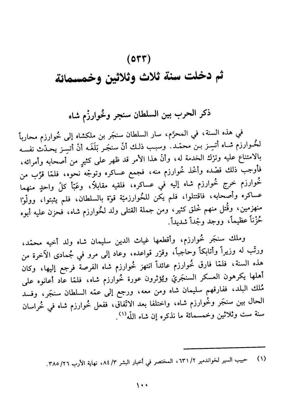 ذِكْرُ الْحَرْبِ بَيْنَ السُّلْطَانِ سَنْجَرَ وَخُوَارِزْمَ شَاهْ