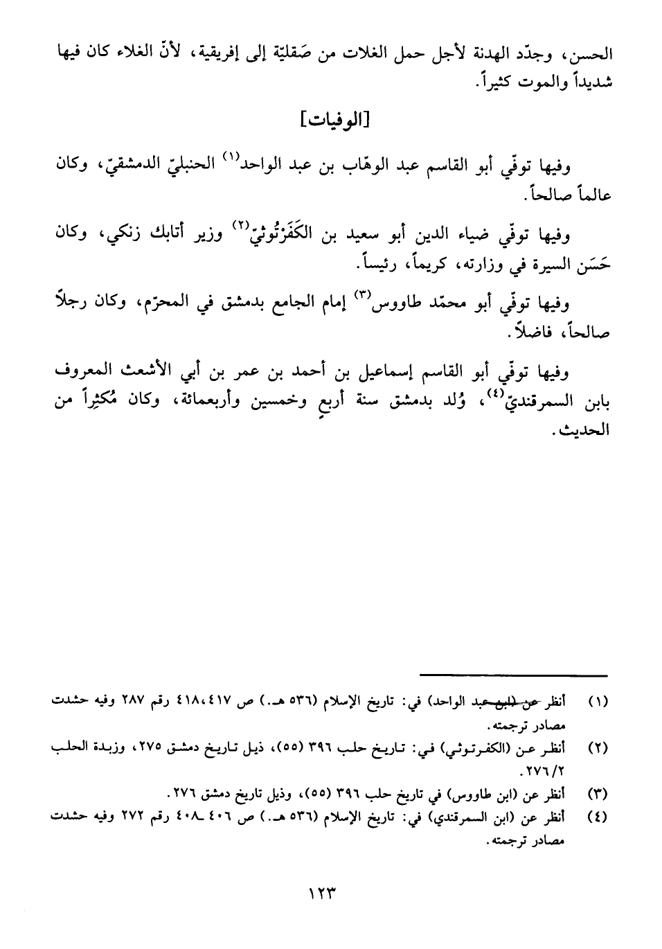 وَفِيهَا تُوُفِّيَ أَبُو الْقَاسِمِ عَبْدُ الْوَهَّابِ بْنُ عَبْدِ الْوَاحِدِ الْحَنْبَلِيُّ الدِّمَشْقِيُّ، وَكَانَ عَالِمًا صَالِحًا.