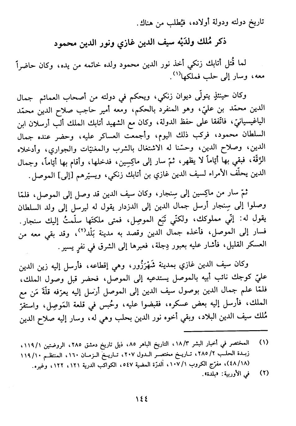 ذِكْرُ مُلْكِ وَلَدَيْهِ سَيْفِ الدِّينِ غَازِي وَنُورِ الدِّينِ مَحْمُودٍ
