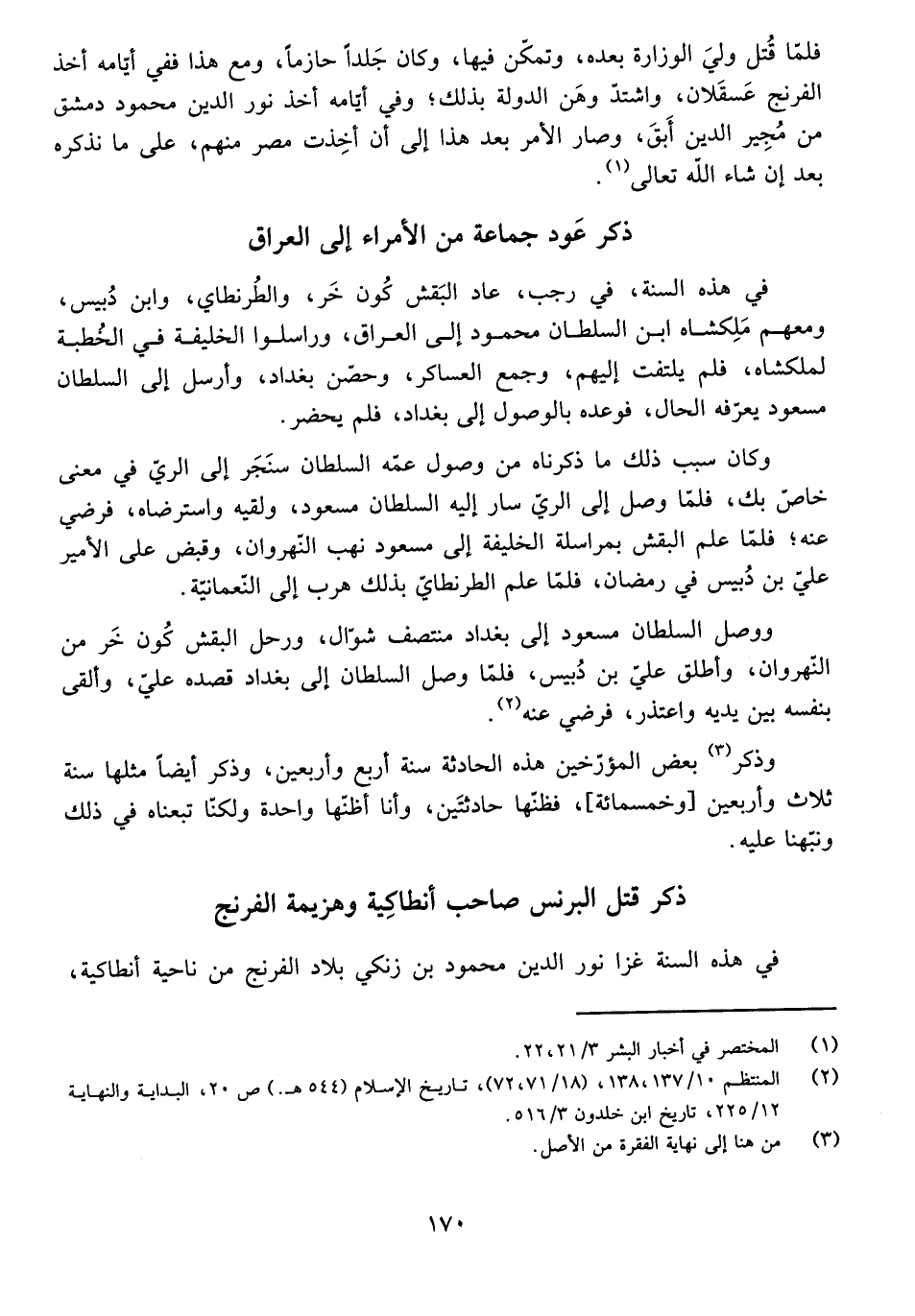 وَذَكَرَ بَعْضُ الْمُؤَرِّخِينَ هَذِهِ الْحَادِثَةَ سَنَةَ أَرْبَعٍ وَأَرْبَعِينَ، وَذَكَرَ أَيْضًا مِثْلَهَا سَنَةَ ثَلَاثٍ وَأَرْبَعِينَ [وَخَمْسِمِائَةٍ] ، فَظَنَّهَا حَادِثَتَيْنِ، وَأَنَا أَظُنُّهَا وَاحِدَةً وَلَكِنَّا تَبِعْنَاهُ فِي ذَلِكَ وَنَبَّهْنَا عَلَيْهِ.