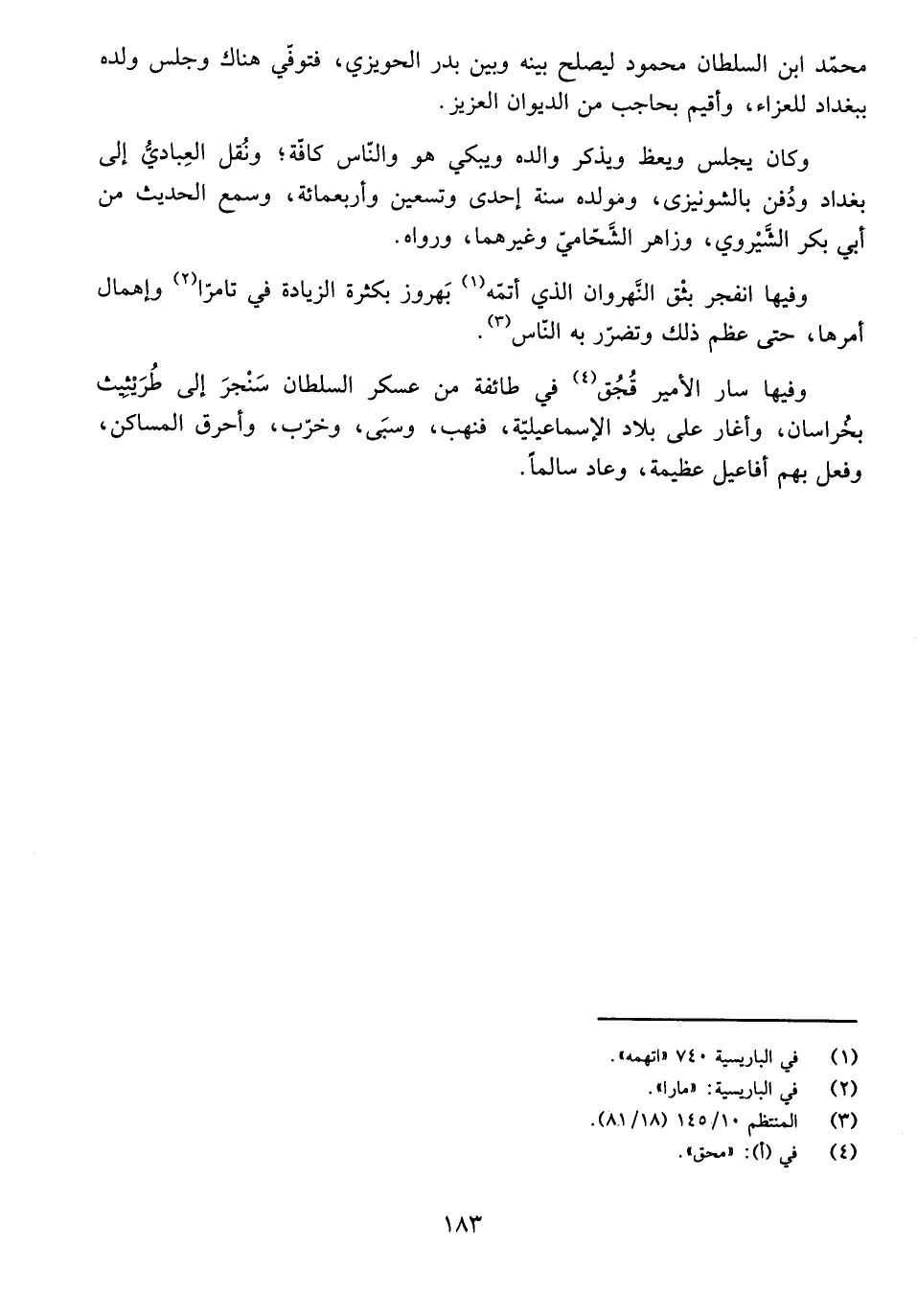 مُحَمَّدٍ ابْنِ السُّلْطَانِ مَحْمُودٍ لِيُصْلِحَ بَيْنَهُ وَبَيْنَ بَدْرٍ الْحُوَيْزِيِّ، فَتُوفِّيَ هُنَاكَ وَجَلَسَ وَلَدُهُ بِبَغْدَادَ لِلْعَزَاءِ، وَأُقِيمَ بِحَاجِبٍ مِنَ الدِّيوَانِ الْعَزِيزِ.