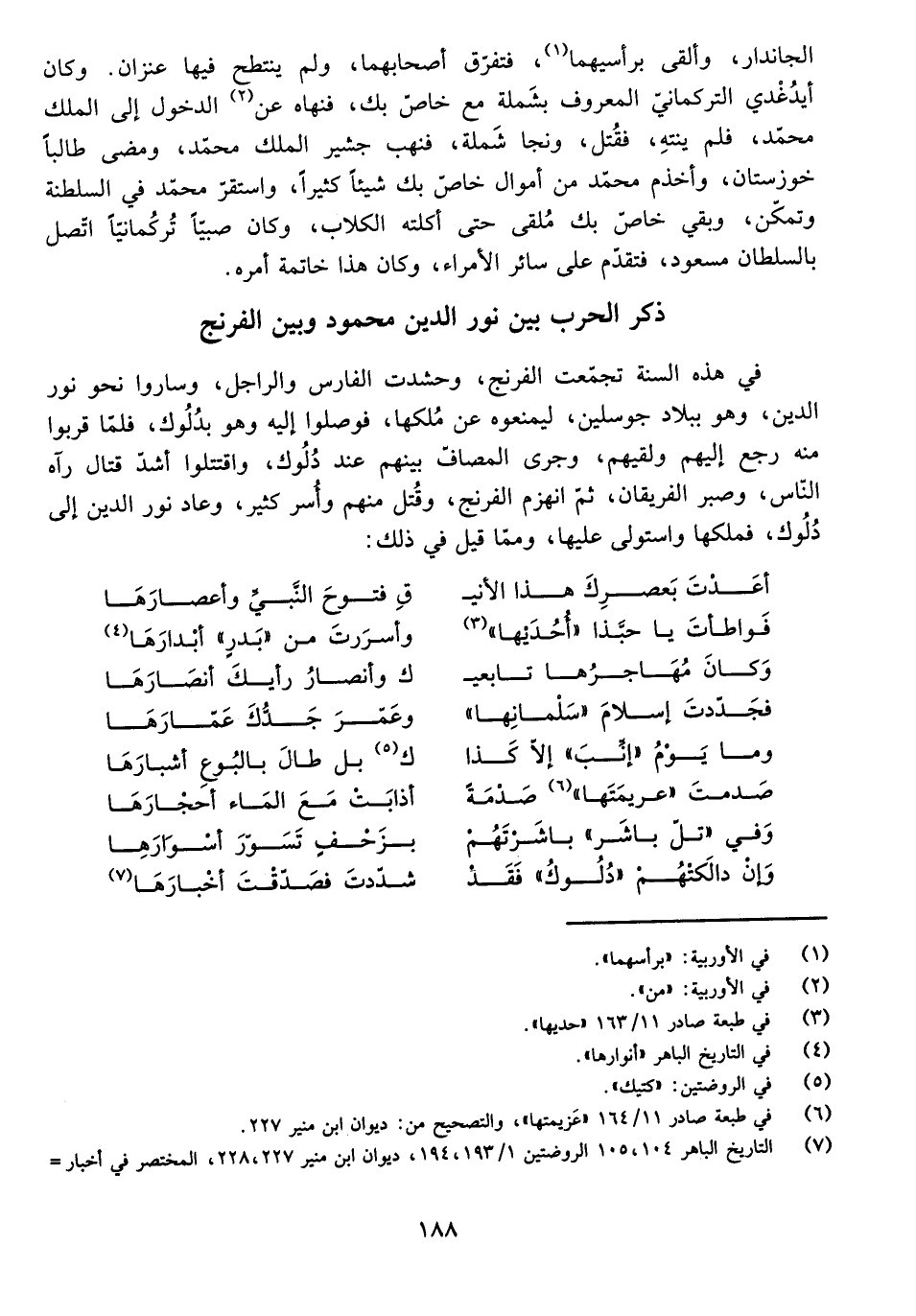 ذِكْرُ الْحَرْبِ بَيْنَ نُورِ الدِّينِ مَحْمُودٍ وَبَيْنَ الْفِرِنْجِ