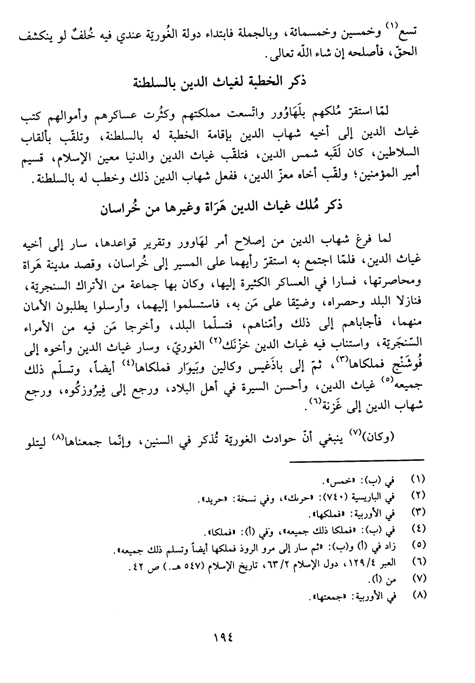تِسْعٍ وَخَمْسِينَ وَخَمْسِمِائَةٍ، وَبِالْجُمْلَةِ فَابْتِدَاءُ دَوْلَةِ الْغُورِيَّةِ عِنْدِي فِيهِ خُلْفٌ لَوْ يَنْكَشِفُ الْحَقُّ فَأُصْلِحُهُ إِنْ شَاءَ اللَّهُ تَعَالَى.