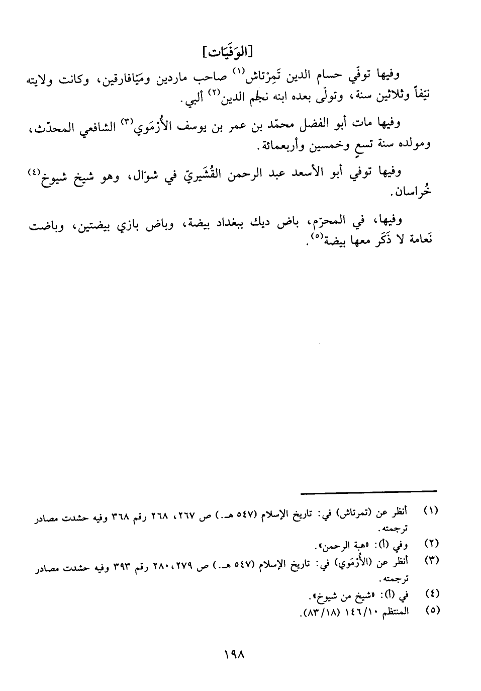 وَفِيهَا مَاتَ أَبُو الْفَضْلِ مُحَمَّدُ بْنُ عُمَرَ بْنِ يُوسُفَ الْأَرْمَوِيُّ الشَّافِعِيُّ الْمُحَدِّثُ، وَمَوْلِدُهُ سَنَةَ تِسْعٍ وَخَمْسِينَ وَأَرْبَعِمِائَةٍ.