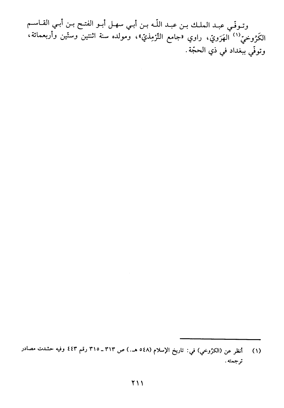 وَتُوُفِّيَ عَبْدُ الْمَلِكِ بْنُ عَبْدِ اللَّهِ بْنِ أَبِي سَهْلٍ أَبُو الْفَتْحِ بْنُ أَبِي الْقَاسِمِ الْكَرُوخِيُّ الْهَرَوِيُّ، رَاوِي " جَامِعِ التِّرْمِذِيِّ "، وَمَوْلِدُهُ سَنَةَ اثْنَتَيْنِ وَسِتِّينَ وَأَرْبَعِمِائَةٍ، وَتُوُفِّيَ بِبَغْدَادَ فِي ذِي الْحِجَّةِ.