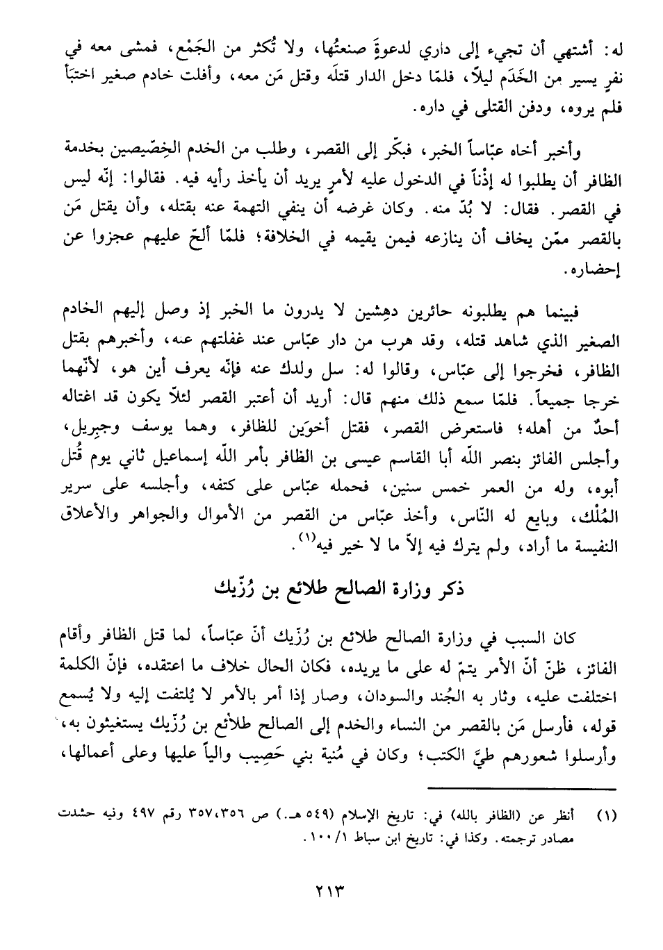 ذِكْرُ وِزَارَةِ الصَّالِحِ طَلَائِعِ بْنِ رُزَيِّكَ