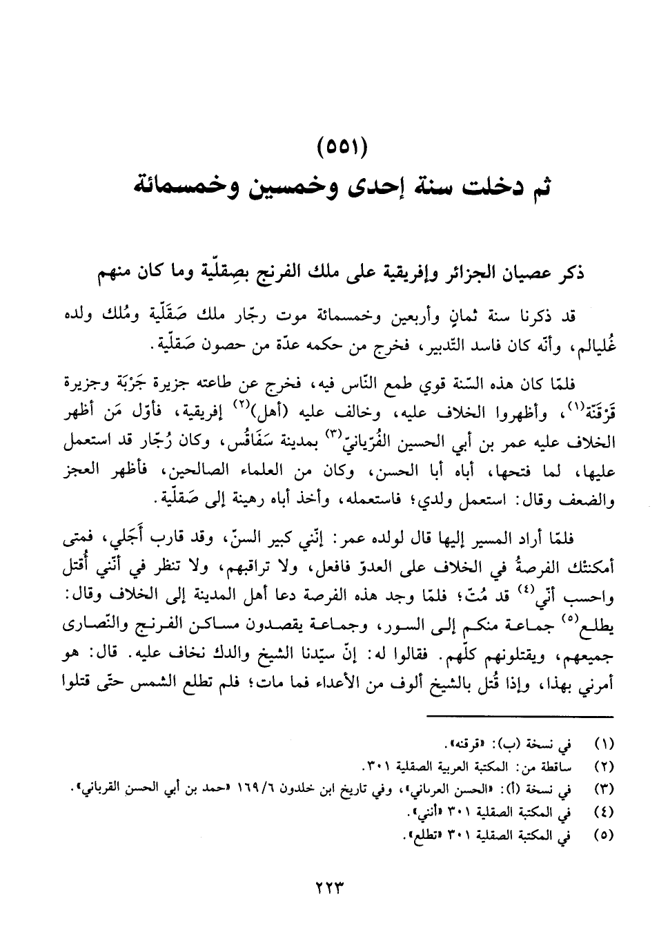 [ثُمَّ دَخَلَتْ سَنَةُ إِحْدَى وَخَمْسِينَ وَخَمْسِمِائَةٍ]