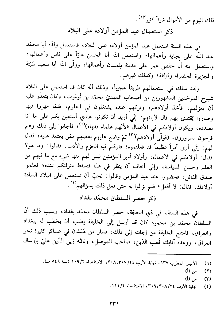فِي هَذِهِ السَّنَةِ اسْتَعْمَلَ عَبْدُ الْمُؤْمِنِ أَوْلَادَهُ عَلَى الْبِلَادِ، فَاسْتَعْمَلَ وَلَدَهُ أَبَا مُحَمَّدٍ عَبْدَ اللَّهِ عَلَى بِجَايَةَ وَأَعْمَالِهَا ; وَاسْتَعْمَلَ ابْنَهُ أَبَا الْحَسَنِ عَلِيًّا عَلَى فَاسَ وَأَعْمَالِهَا ; وَاسْتَعْمَلَ ابْنَهُ أَبَا حَفْصٍ عُمَرَ عَلَى مَدِينَةِ تِلْمِسَانَ وَأَعْمَالِهَا، وَوَلَّى ابْنَهُ أَبَا سَعِيدٍ سَبْتَةَ وَالْجَزِيرَةَ الْخَضْرَاءَ وَمَالِقَةَ ; وَكَذَلِكَ غَيْرُهُمْ.