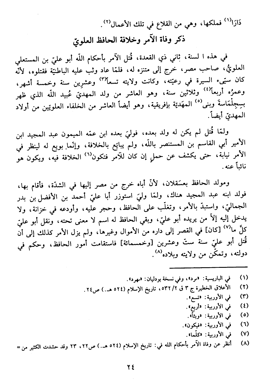 ذِكْرُ وَفَاةِ الْآمِرِ، وَخِلَافَةِ الْحَافِظِ الْعَلَوِيِّ