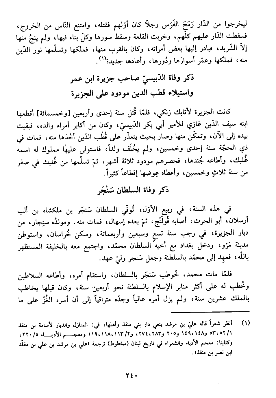 ذِكْرُ وَفَاةِ الدُّبَيْسِيِّ صَاحِبِ جَزِيرَةِ ابْنِ عُمَرَ وَاسْتِيلَاءِ قُطْبِ الدِّينِ مَوْدُودٍ عَلَى الْجَزِيرَةِ