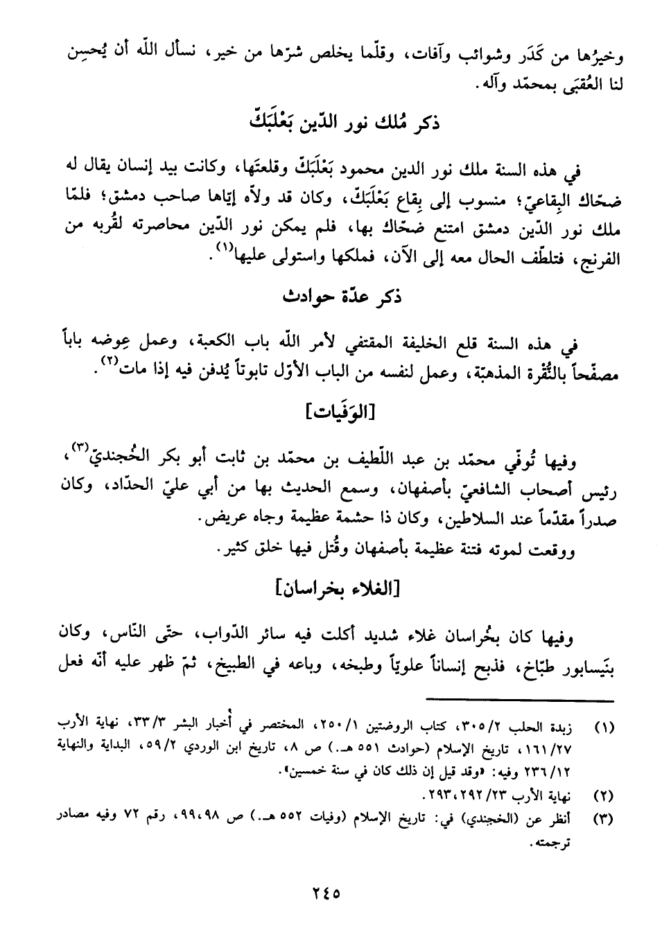 [الْغَلَاءُ بِخُرَاسَانَ] وَفِيهَا كَانَ بِخُرَاسَانَ غَلَاءٌ شَدِيدٌ أُكِلَتْ فِيهِ سَائِرُ الدَّوَابِّ، حَتَّى النَّاسِ، وَكَانَ بِنَيْسَابُورَ طَبَّاخٌ، فَذَبَحَ إِنْسَانًا عَلَوِيًّا وَطَبَخَهُ، وَبَاعَهُ فِي الطَّبِيخِ، ثُمَّ ظَهَرَ عَلَيْهِ أَنَّهُ فَعَلَ