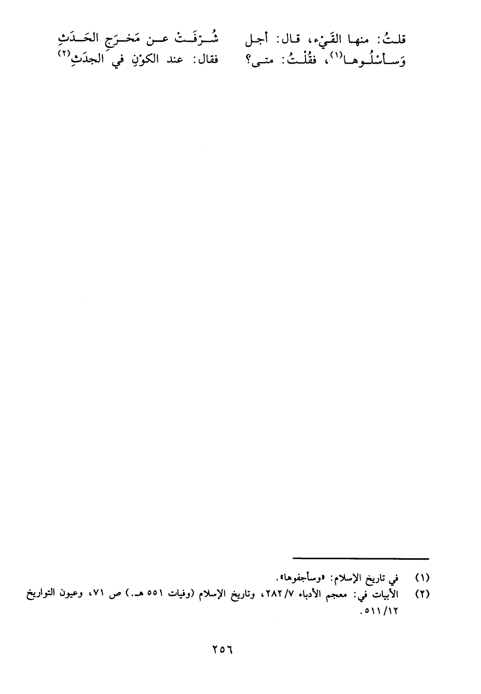 شُرِّفَتْ عَنْ مَخْرَجِ الْحَدَثِ ... وَسَأَسْلُوهَا، فَقُلْتُ مَتَى؟