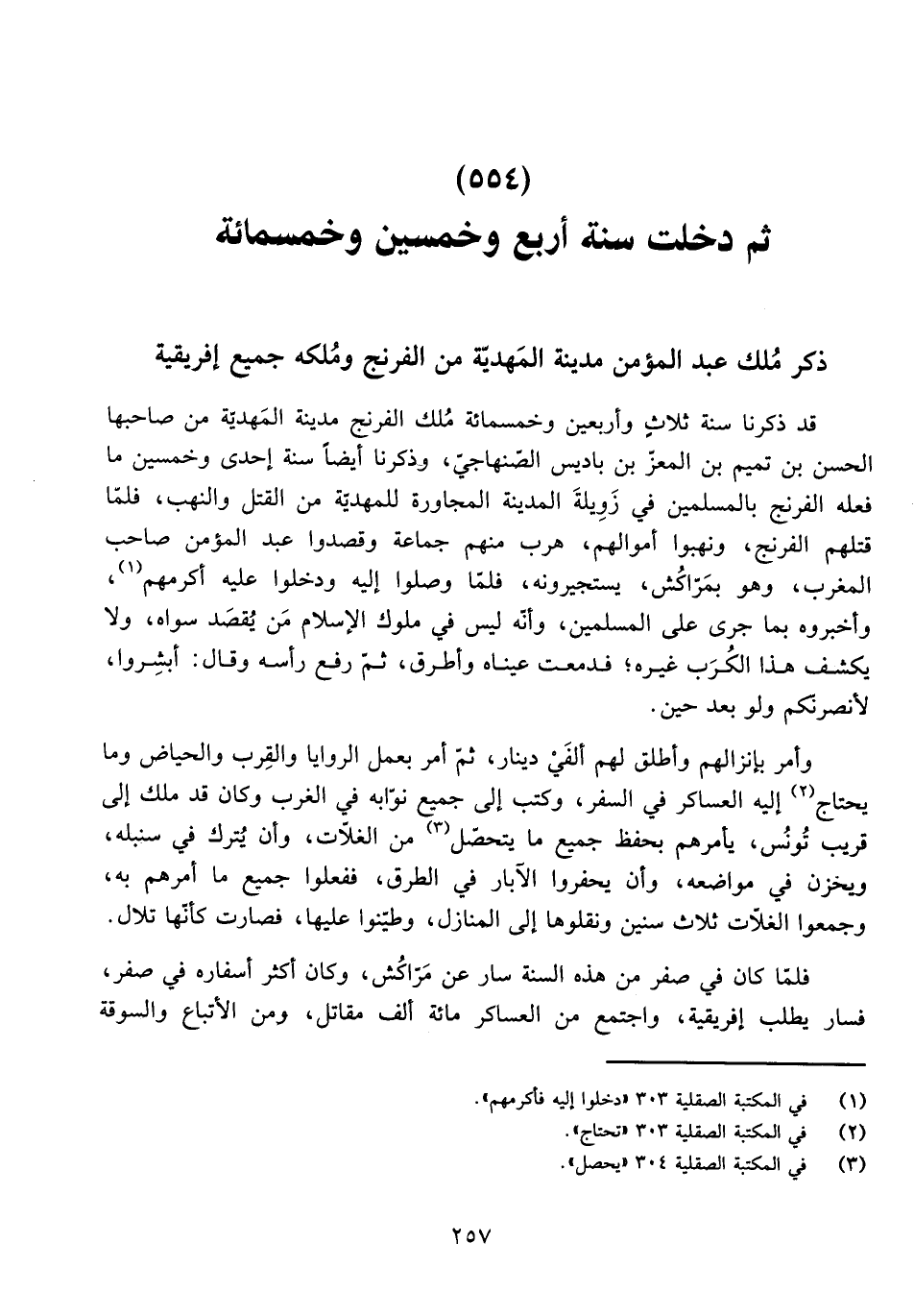 ثُمَّ دَخَلَتْ سَنَةُ أَرْبَعٍ وَخَمْسِينَ وَخَمْسِمِائَةٍ.