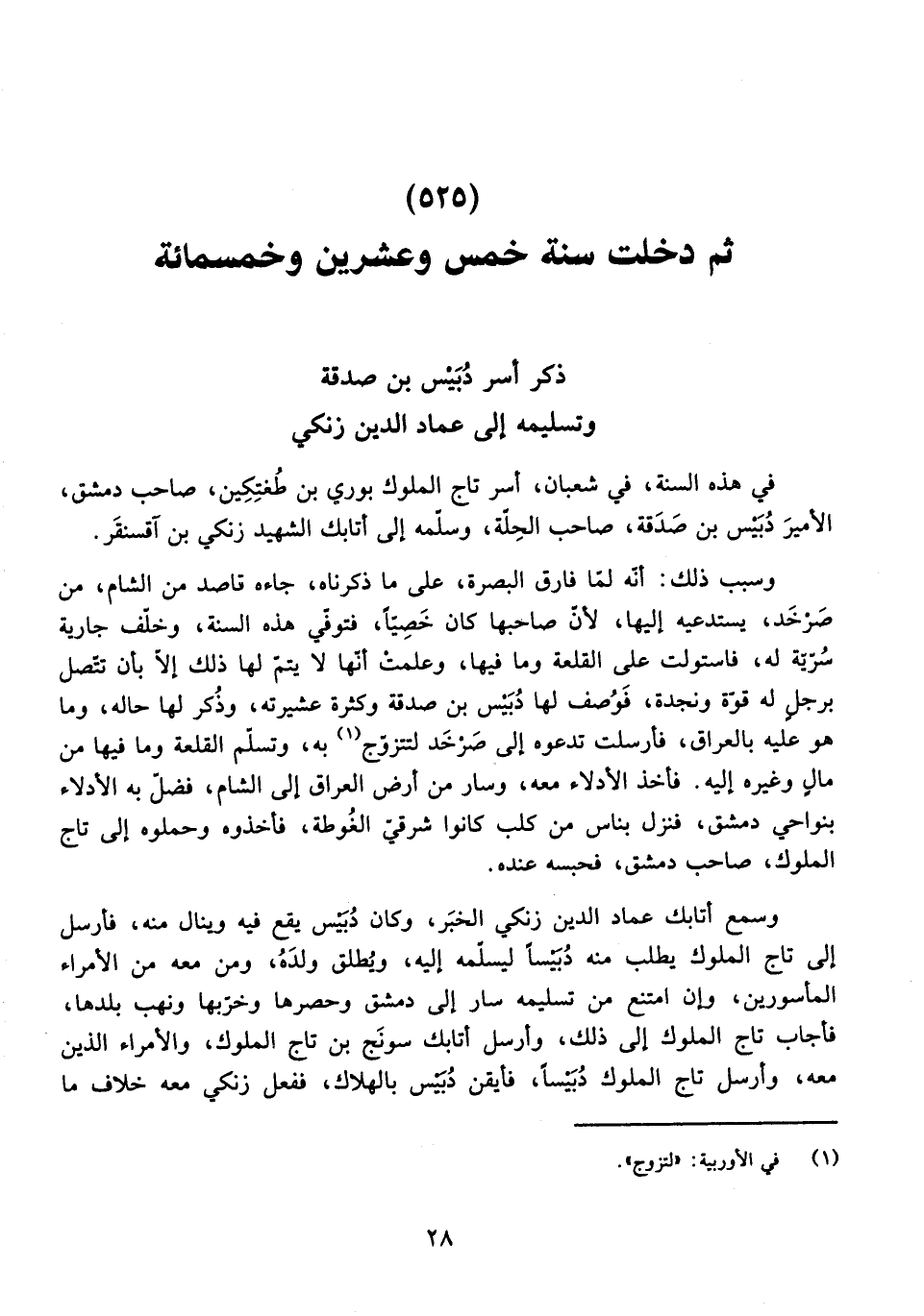 ذِكْرُ أَسْرِ دُبَيْسِ بْنِ صَدَقَةَ وَتَسْلِيمِهِ إِلَى عِمَادِ الدِّينِ زَنْكِي