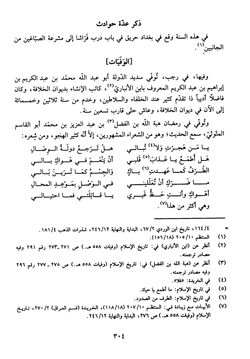 وَفِيهَا، فِي رَجَبَ، تُوُفِّيَ سَدِيدُ الدَّوْلَةِ أَبُو عَبْدِ اللَّهِ مُحَمَّدُ بْنُ عَبْدِ الْكَرِيمِ بْنِ إِبْرَاهِيمَ بْنِ عَبْدِ الْكَرِيمِ الْمَعْرُوفُ بِابْنِ الْأَنْبَارِيِّ، كَاتِبُ الْإِنْشَاءِ بِدِيوَانِ الْخِلَافَةِ، وَكَانَ فَاضِلًا أَدِيبًا ذَا تَقَدُّمٍ كَثِيرٍ عِنْدَ الْخُلَفَاءِ وَالسَّلَاطِينِ، وَخَدَمَ مِنْ سَنَةِ ثَلَاثِينَ وَخَمْسِمِائَةٍ إِلَى الْآنِ فِي دِيوَانِ الْخِلَافَةِ، وَعَاشَ حَتَّى قَارَبَ تِسْعِينَ سَنَةً.