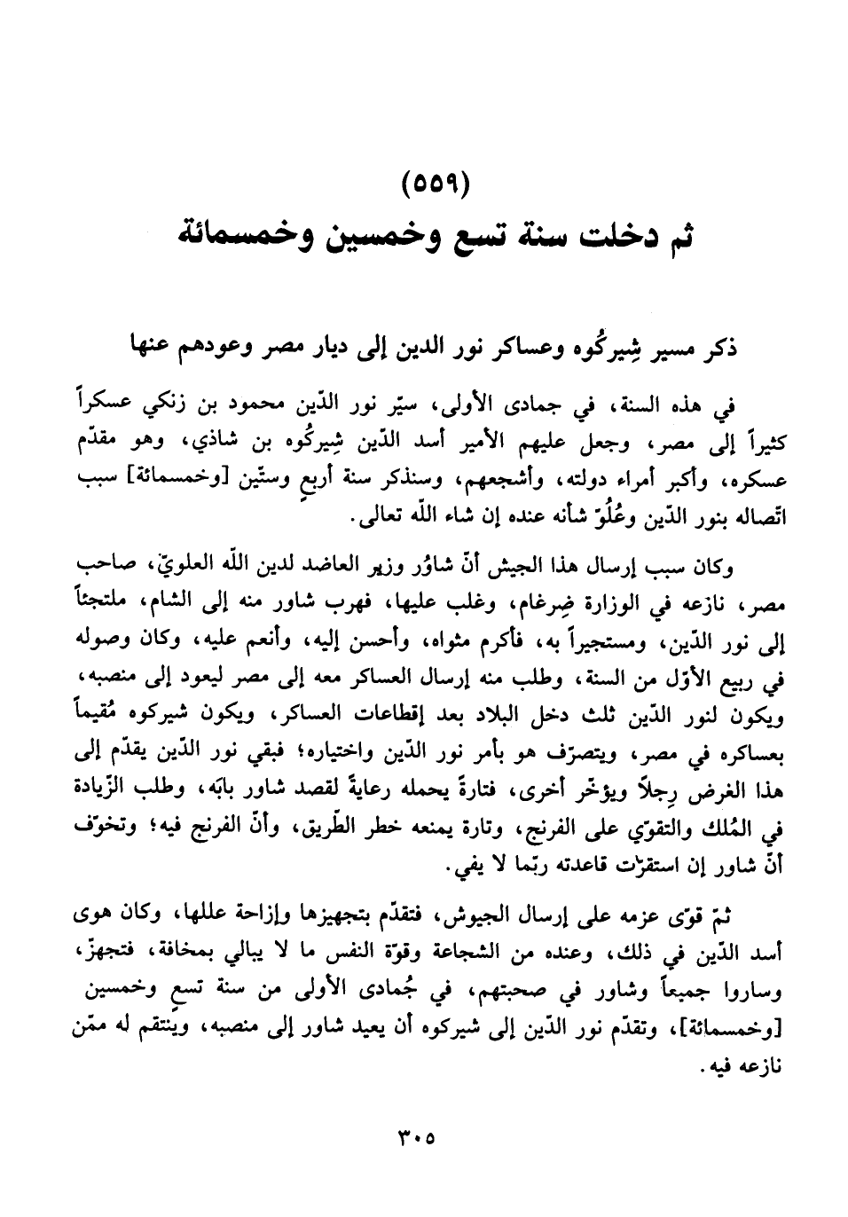 ذِكْرُ مَسِيرِ شِيرِكُوهْ وَعَسَاكِرِ نُورِ الدِّينِ إِلَى دِيَارِ مِصْرَ وُعَوْدِهِمْ عَنْهَا