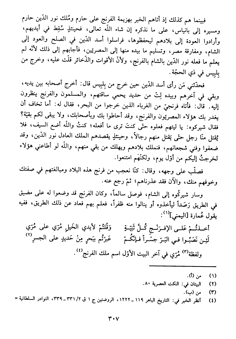 وَلَفْظَةُ مُرِّي فِي آخِرِ الْبَيْتِ الْأَوَّلِ اسْمُ مَلِكِ الْفِرِنْجِ.