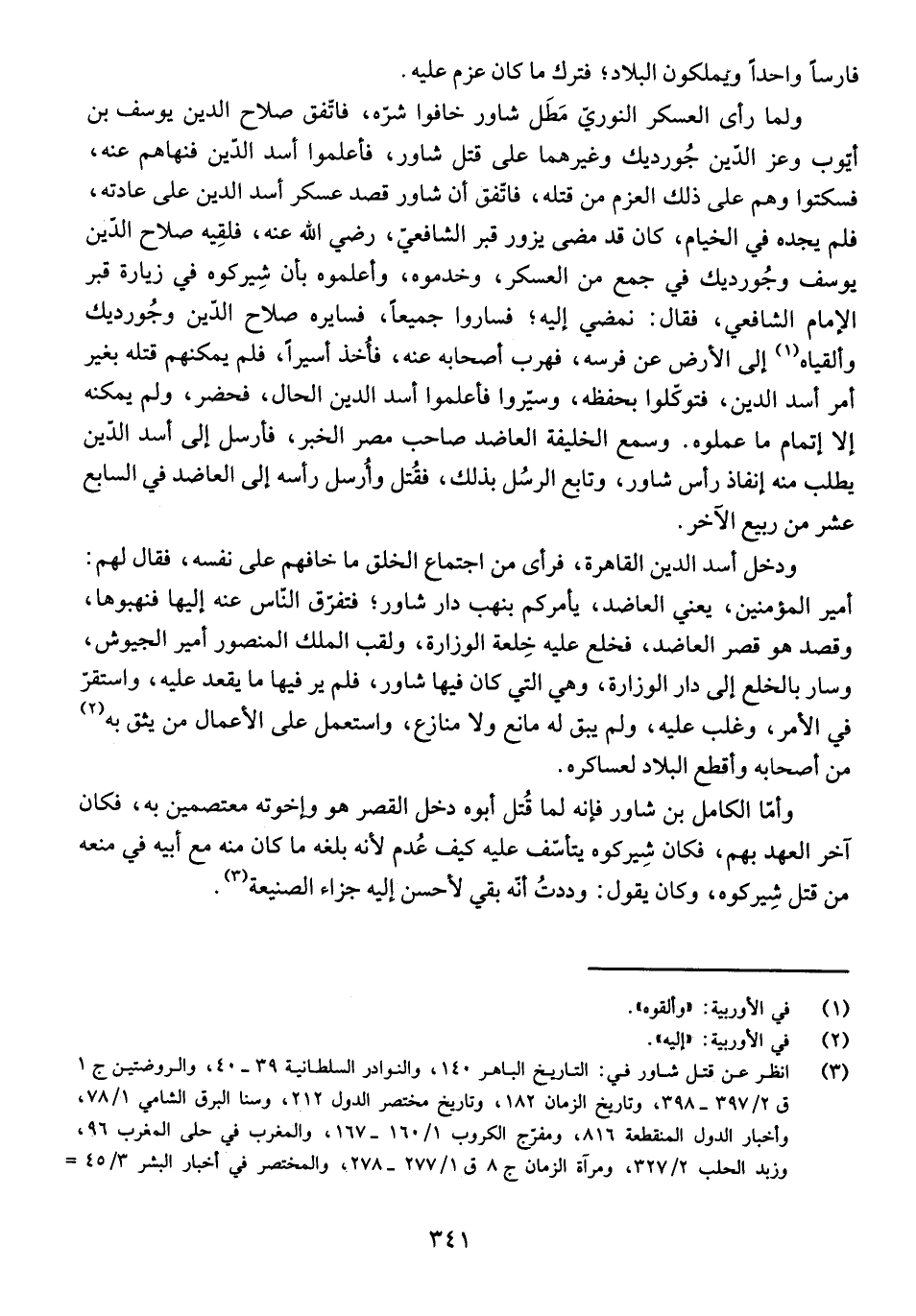 وَأَمَّا الْكَامِلُ بْنُ شَاوُرَ فَإِنَّهُ لَمَّا قُتِلَ أَبُوهُ دَخَلَ الْقَصْرَ هُوَ وَإِخْوَتُهُ مُعْتَصِمِينَ بِهِ، فَكَانَ آخِرَ الْعَهْدِ بِهِمْ، فَكَانَ شِيرِكُوهْ يَتَأَسَّفُ عَلَيْهِ كَيْفَ عُدِمَ لِأَنَّهُ بَلَغَهُ مَا كَانَ مِنْهُ مَعَ أَبِيهِ فِي مَنْعِهِ مِنْ قَتْلِ شِيرِكُوهْ، وَكَانَ يَقُولُ: وَدِدْتُ أَنَّهُ بَقِيَ ; لِأُحْسِنَ إِلَيْهِ جَزَاءَ الصَّنِيعَةِ.