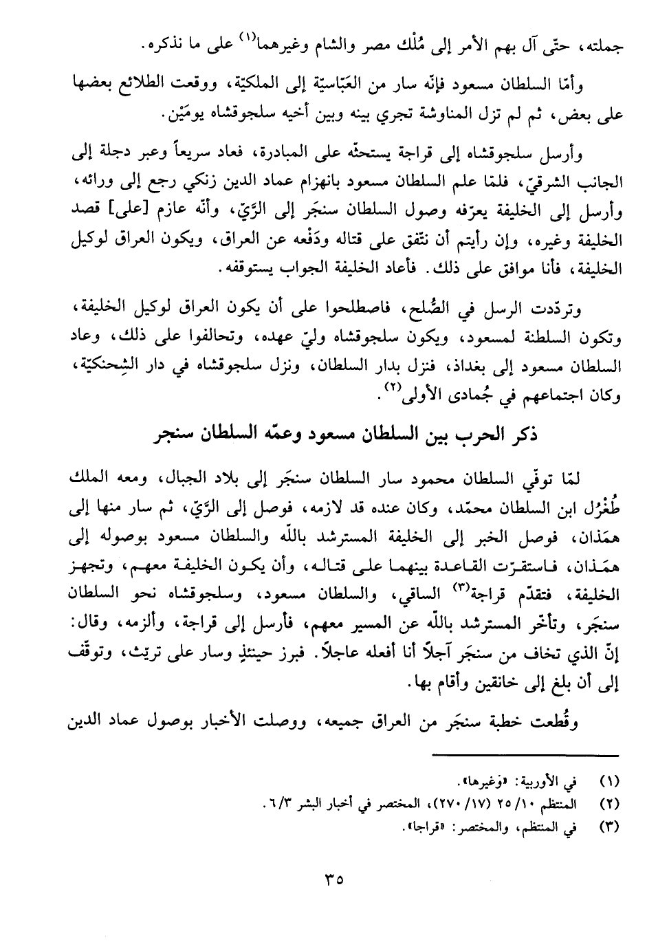 وَأَمَّا السُّلْطَانُ مَسْعُودٌ فَإِنَّهُ سَارَ مِنَ الْعَبَّاسِيَّةِ إِلَى الْمَلَكِيَّةِ، وَوَقَعَتِ الطَّلَائِعُ بَعْضُهَا عَلَى بَعْضٍ، ثُمَّ لَمْ تَزَلِ الْمُنَاوَشَةُ تَجْرِي بَيْنَهُ وَبَيْنَ أَخِيهِ سَلْجُوقْشَاهْ يَوْمَيْنِ.