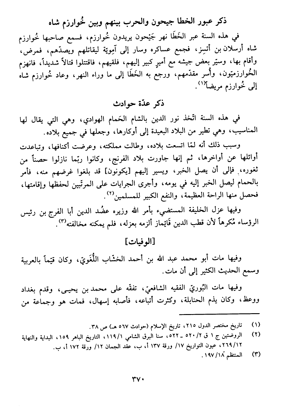 فِي هَذِهِ السَّنَةِ عَبَرَ الْخَطَا نَهْرَ جَيْحُونَ يُرِيدُونَ خُوَارَزْمَ، فَسَمِعَ صَاحِبُهَا خُوَارَزْم شَاهْ أَرْسِلَان بْنُ أَتْسِزَ، فَجَمَعَ عَسَاكِرَهُ وَسَارَ إِلَى آمِوِيَّةَ ; لِيُقَاتِلَهُمْ وَيَصُدَّهُمْ، فَمَرِضَ، وَأَقَامَ بِهَا، وَسَيَّرَ بَعْضَ جَيْشِهِ مَعَ أَمِيرٍ كَبِيرٍ إِلَيْهِمْ، فَلَقِيَهُمْ، فَاقْتَتَلُوا قِتَالًا شَدِيدًا، فَانْهَزَمَ الْخُوَارَزْمِيُّونَ، وَأُسِرَ مُقَدَّمُهُمْ، وَرَجَعَ بِهِ الْخَطَا إِلَى مَا وَرَاءَ النَّهْرِ، وَعَادَ خُوَارَزْم شَاهْ إِلَى خُوَارَزْمَ مَرِيضًا.