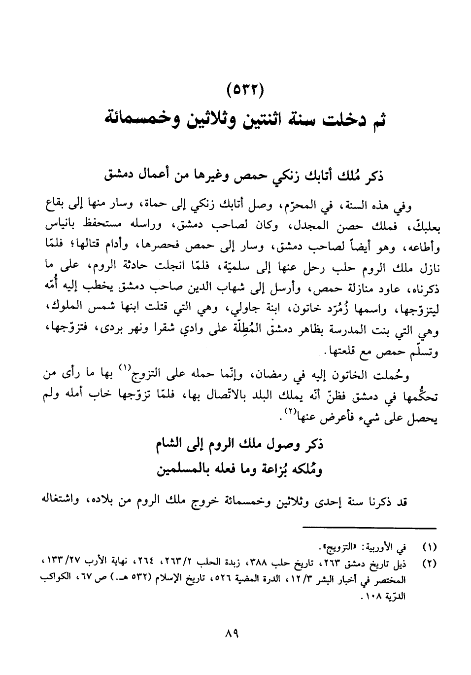 ثُمَّ دَخَلَتْ سَنَةُ اثْنَتَيْنِ وَثَلَاثِينَ وَخَمْسِمَائَةٍ