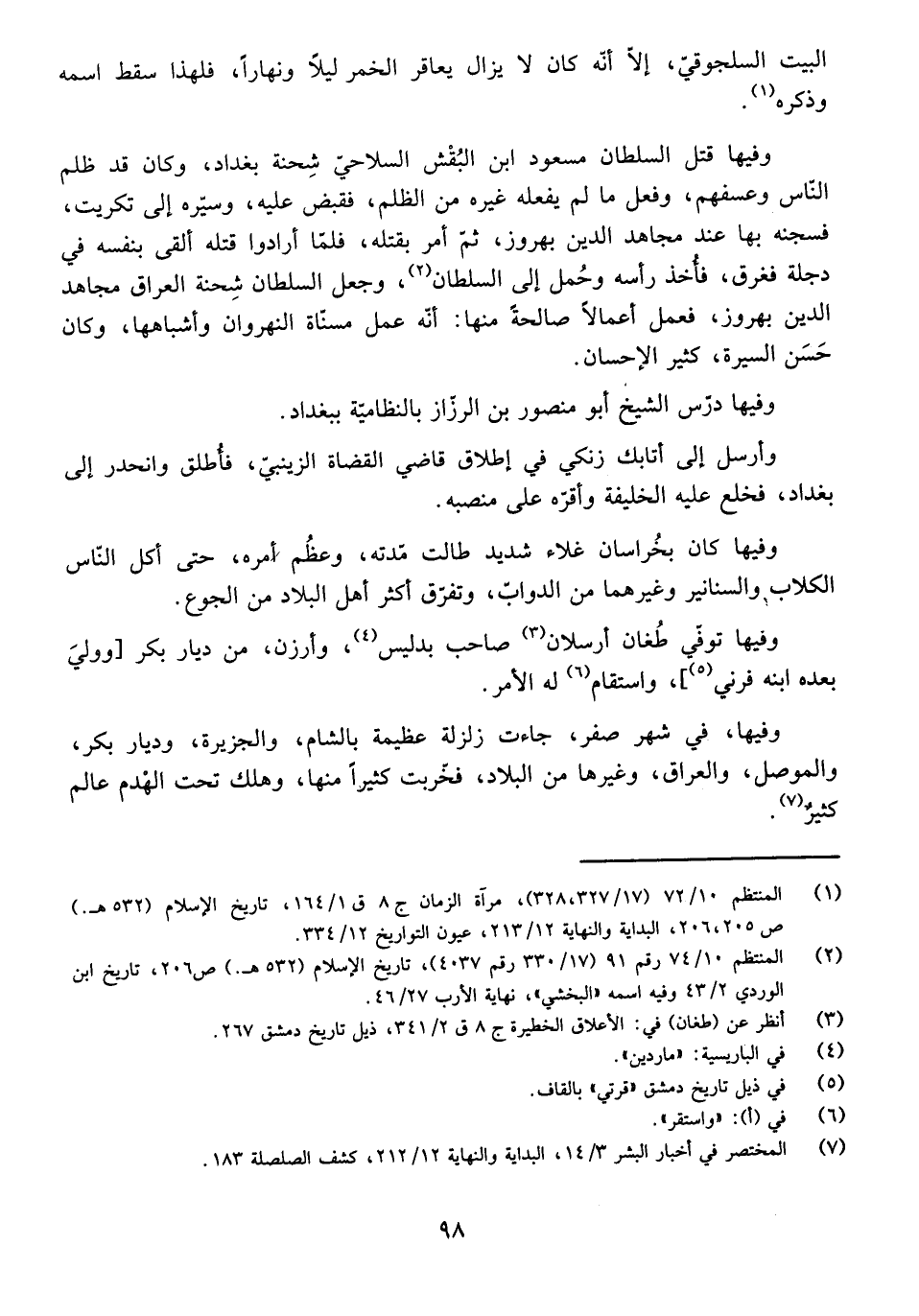 وَفِيهَا فِي شَهْرِ صَفَرٍ، جَاءَتْ زَلْزَلَةٌ عَظِيمَةٌ بِالشَّامِ، وَالْجَزِيرَةِ، وَدِيَارِ بَكْرٍ، وَالْمَوْصِلِ، وَالْعِرَاقِ، وَغَيْرِهَا مِنِ الْبِلَادِ، فَخَرَّبَتْ كَثِيرًا مِنْهَا، وَهَلَكَ تَحْتَ الْهَدْمِ عَالَمٌ كَثِيرٌ.
