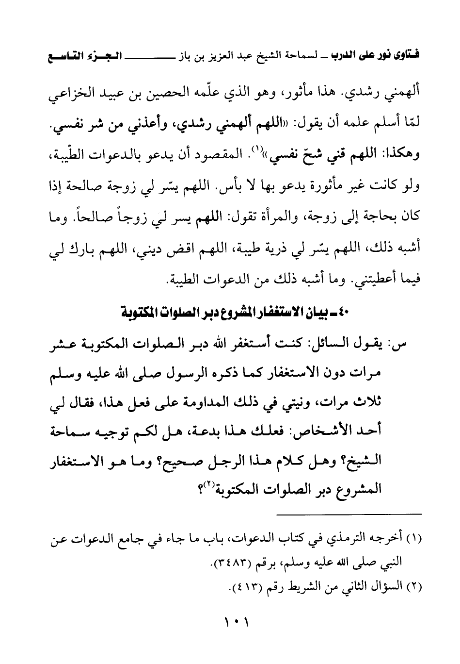 كتاب فتاوى نور على الدرب لابن باز بعناية الشويعر (اسم الجزء: 9)