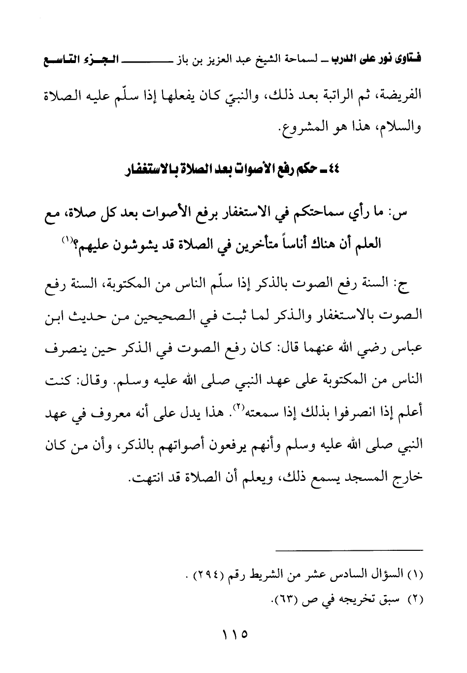 44 - حكم رفع الأصوات بعد الصلاة بالاستغفار