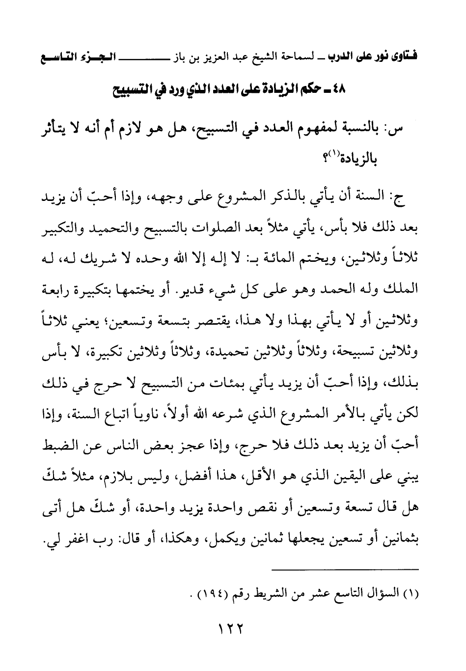 48 - حكم الزيادة على العدد الذي ورد في التسبيح