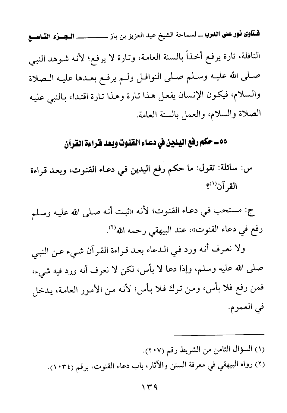 55 - حكم رفع اليدين في دعاء القنوت وبعد قراءة القرآن