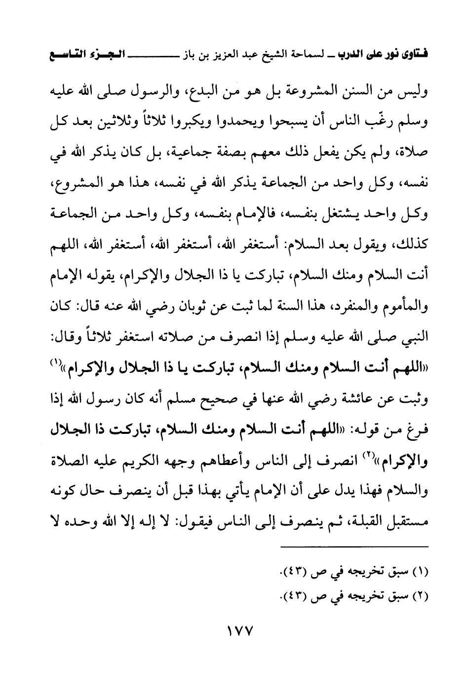 وليس من السنن المشروعة بل هو من البدع، والرسول صلى الله عليه وسلم رغب الناس أن يسبحوا ويحمدوا ويكبروا ثلاثا وثلاثين بعد كل صلاة، ولم يكن يفعل ذلك معهم بصفة جماعية، بل كان يذكر الله في نفسه، وكل واحد من الجماعة يذكر الله في نفسه، هذا هو المشروع، وكل واحد يشتغل بنفسه، فالإمام بنفسه، وكل واحد من الجماعة كذلك، ويقول بعد السلام: أستغفر الله، أستغفر الله، أستغفر الله، اللهم أنت السلام ومنك السلام، تباركت يا ذا الجلال والإكرام، يقوله الإمام والمأموم والمنفرد، هذا السنة لما ثبت عن ثوبان رضي الله عنه قال: كان النبي صلى الله عليه وسلم إذا انصرف من صلاته استغفر ثلاثا وقال: «اللهم أنت السلام ومنك السلام، تباركت يا ذا الجلال والإكرام (¬1)»