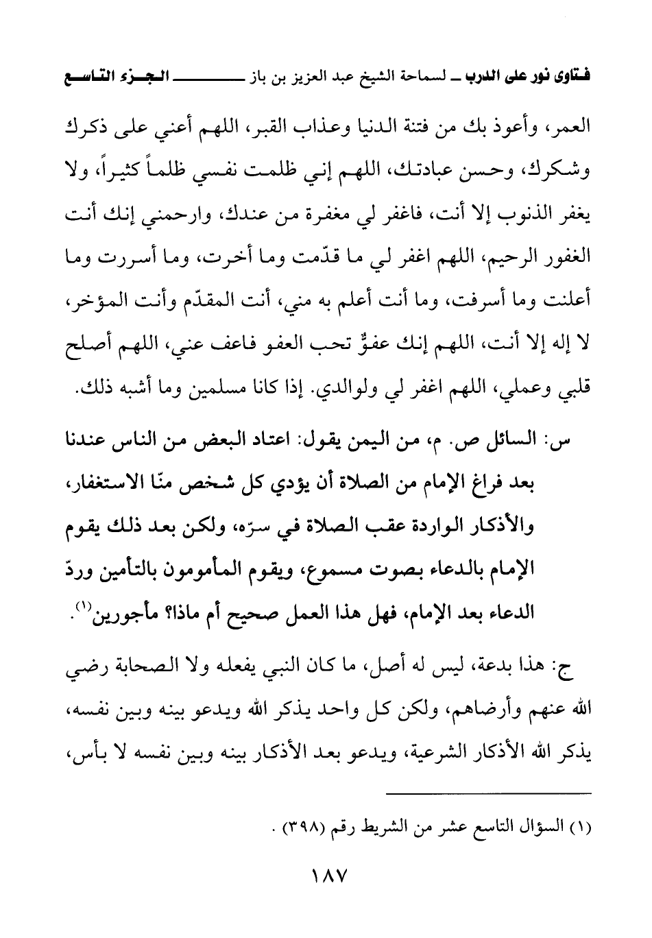 (¬1) السؤال التاسع عشر من الشريط رقم (398).
