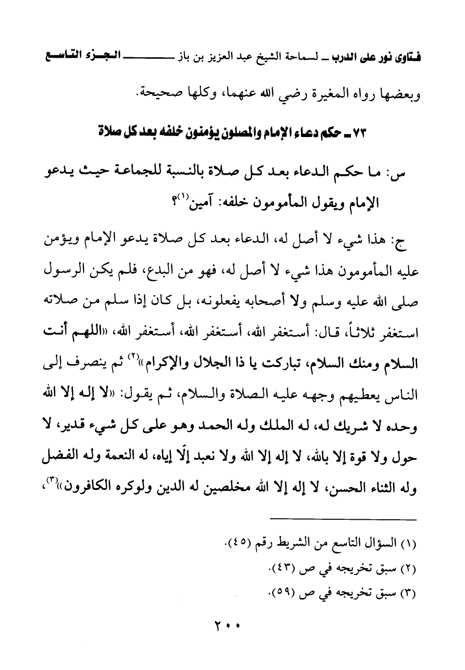 73 - حكم دعاء الإمام والمصلون يؤمنون خلفه بعد كل صلاة
