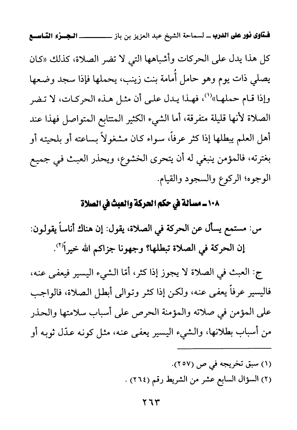 108 - مسألة في حكم الحركة والعبث في الصلاة