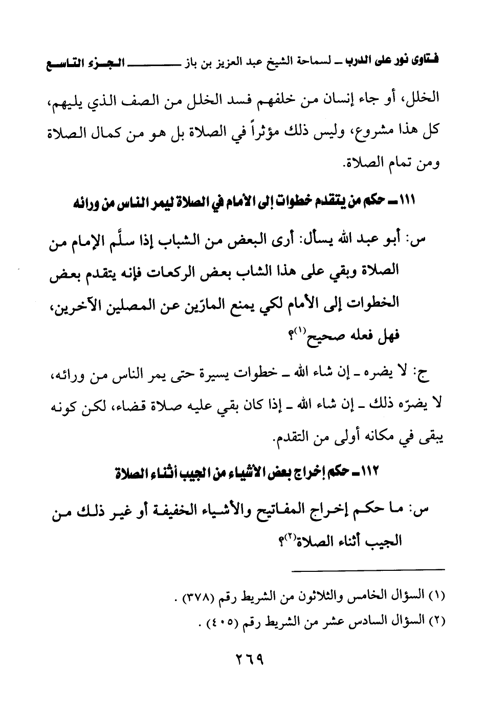 111 - حكم من يتقدم خطوات إلى الأمام في الصلاة ليمر الناس من ورائه