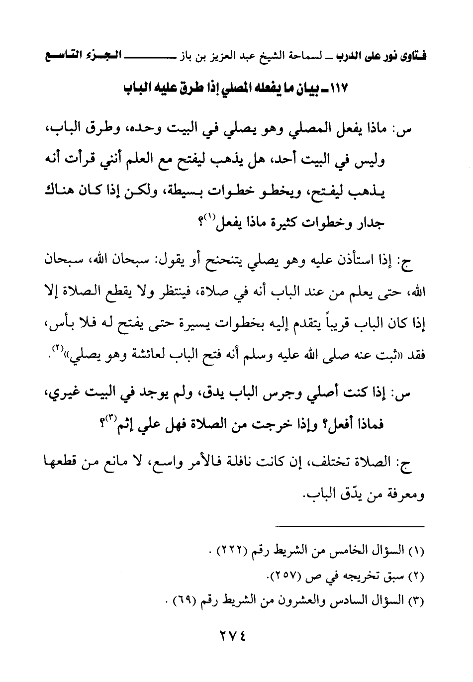 117 – بيان ما يفعله المصلي إذا طرق عليه الباب
