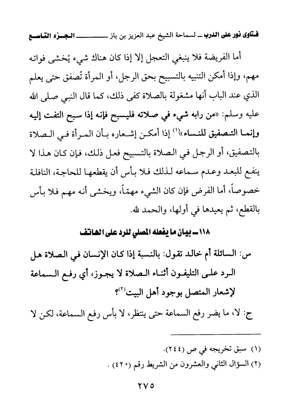 118 – بيان ما يفعله المصلي للرد على الهاتف