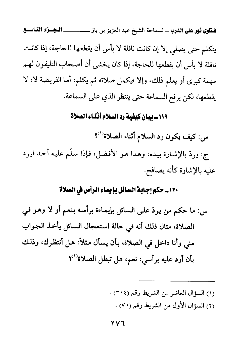 119 - بيان كيفية رد السلام أثناء الصلاة