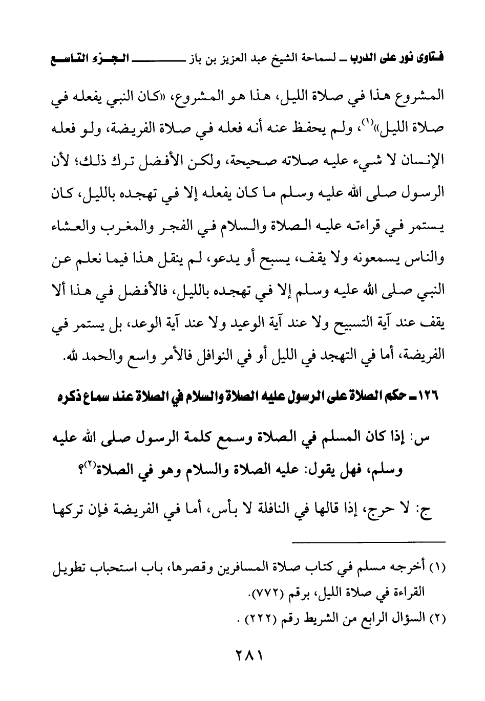 126 - حكم الصلاة على الرسول عليه الصلاة والسلام في الصلاة عند سماع ذكره