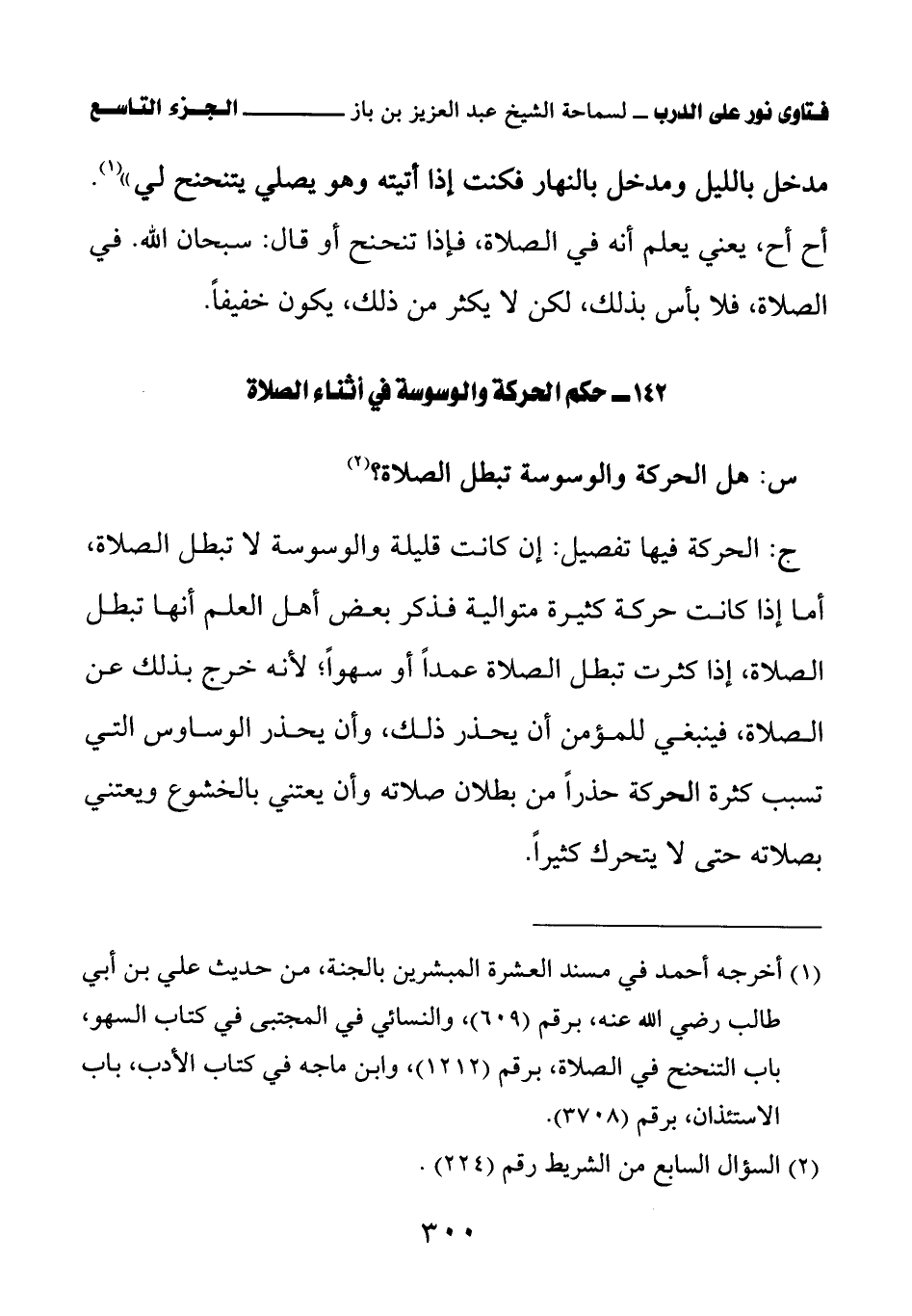 142 - حكم الحركة والوسوسة في أثناء الصلاة