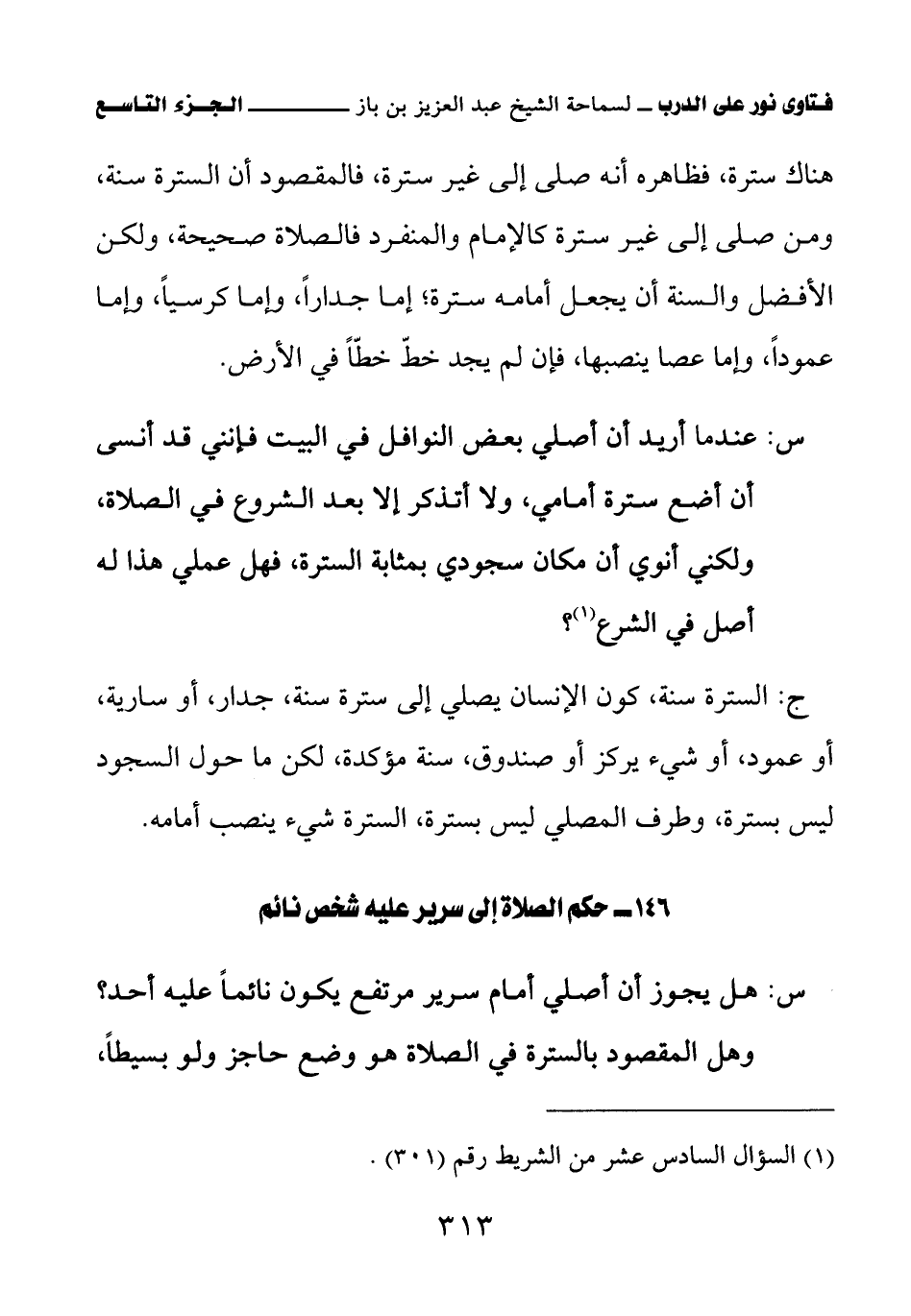 146 - حكم الصلاة إلى سرير عليه شخص نائم