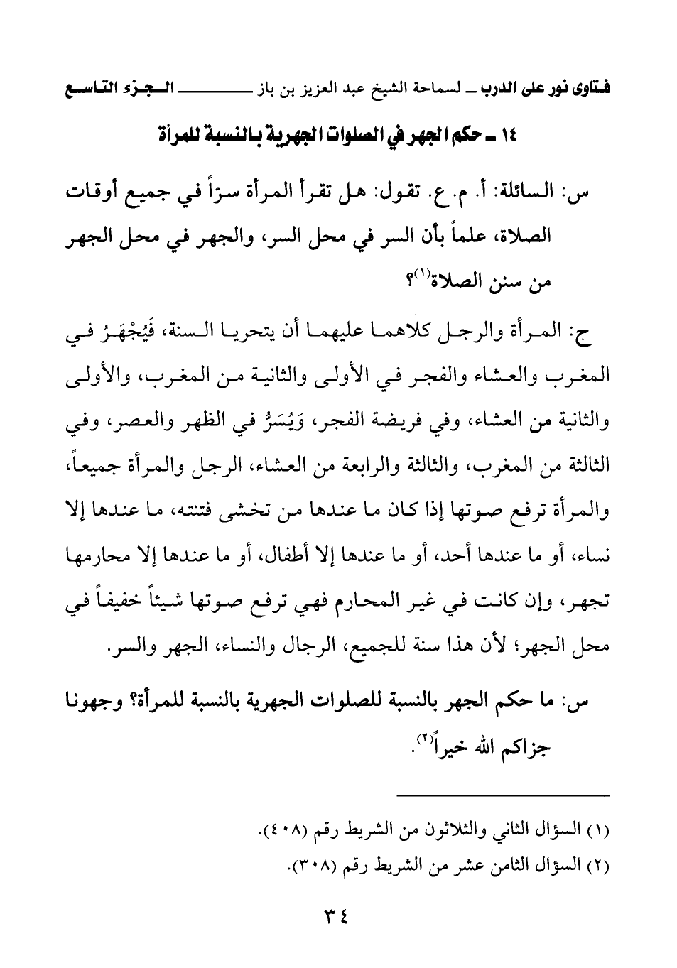14. حكم الجهر في الصلوات الجهرية بالنسبة للمرأة